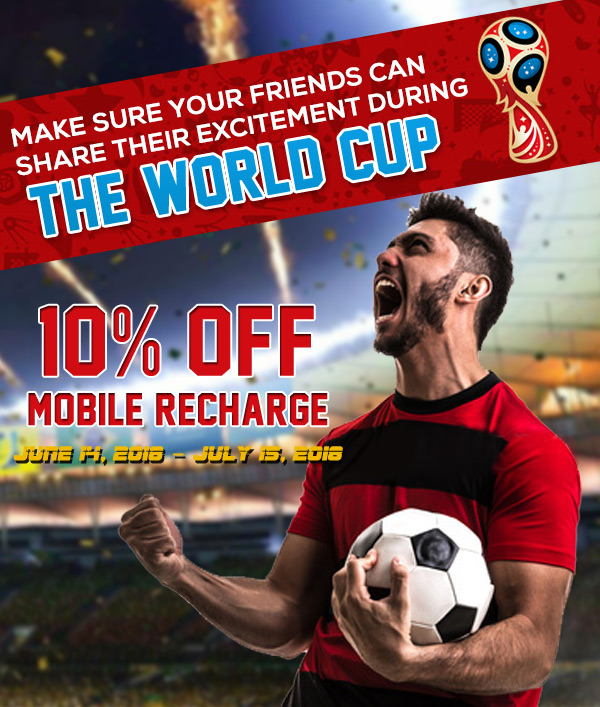 - 10% Off Mobile Recharge during the 2018 FIFA World Cup